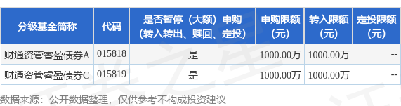 本站音信,11月6日财通证券钞票处置有限公司发布《财通资管睿盈债券型证券投资基金暂停大额申购、转机转入、如期定额投资业务公告》。公告中请示,为珍爱财通资管睿盈债券型证券投资基金的褂讪运作,保护基金份额执有东说念主的利益,自2025年11月6日起财通资管睿盈债券型证券投资基金暂停大额申购、转机转入、如期定额投资业务开yun体育网,申购、转机转入上限金额为1000.0万元,下属分级基金休养明细如下: